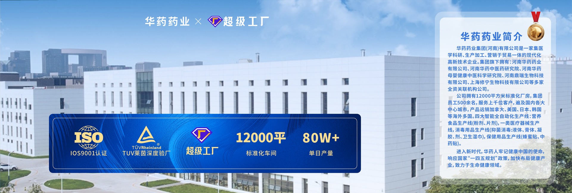 河南華藥集團是一家集研發、生產、加工、銷售于一體的現代化高新技術企業。集團旗下擁有河南華藥藥業有限公司、上海修寧生物科技有限公司、河南鼎瑞生物科技有限公司三家全資子公司。華藥集團先后創立了“華藥漢本”、“華藥帝龍”、“修寧康”、“仁和泰康”、“信爾康”、“豫醫古方”、“汐博士”、“HYHB”、“華育慧寶”等多個知名品牌。生產線涵蓋粉劑、片劑、液體、蜂蜜貼、膏藥貼劑等五大生產線?,F有產品100余..···